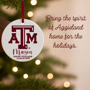 Celebrate their Aggie journey with a personalized ornament made to shine for every milestone.